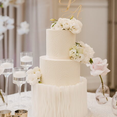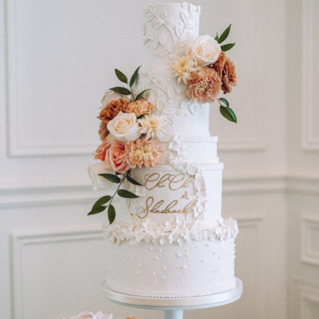 Categories: Featured Wedding Cakes, Wedding CakesSeptember 1, 2025Project navigationPreviousPrevious project:Wedding cake with custom decorNextNext project:Multi-level wedding cake with gold trim